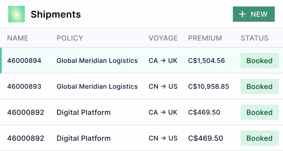 Gain a holistic view of risk with real-time dashboards across policies, shipments, and insureds to understand exposure at a glance