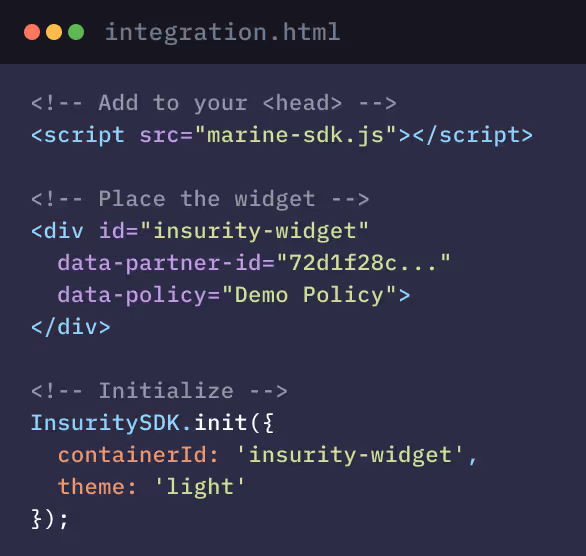 Embed Insurity Marine Suite into your workflows using just a few lines of code with a fully managed API toolkit